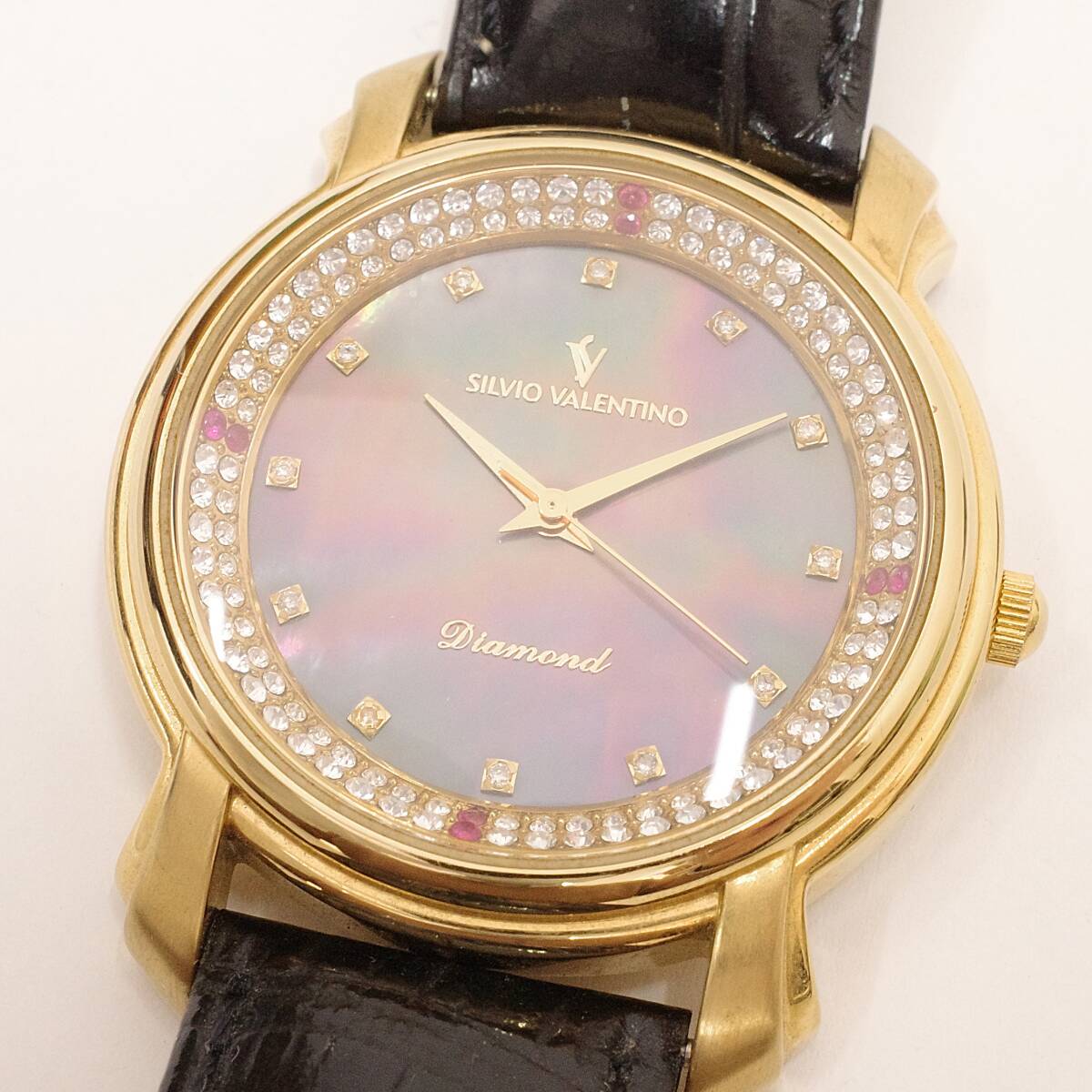 - SILVIO VALENTINO シルヴィオ ヴァレンティノ SV-E02 12Pダイヤ 8Pルビー ブラックシェル文字盤 QZ クォーツ 腕時計 レディース