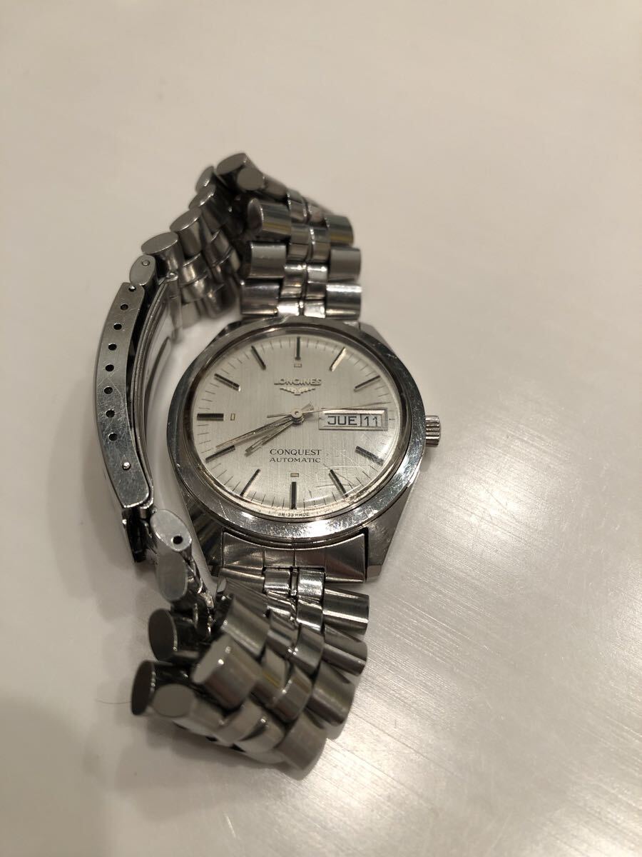 > ロンジン コンクエスト自動巻き 稼働品 シルバー文字盤 腕時計 ヴィンテージ デイデイト 昭和レトロ アンティーク 1円〜