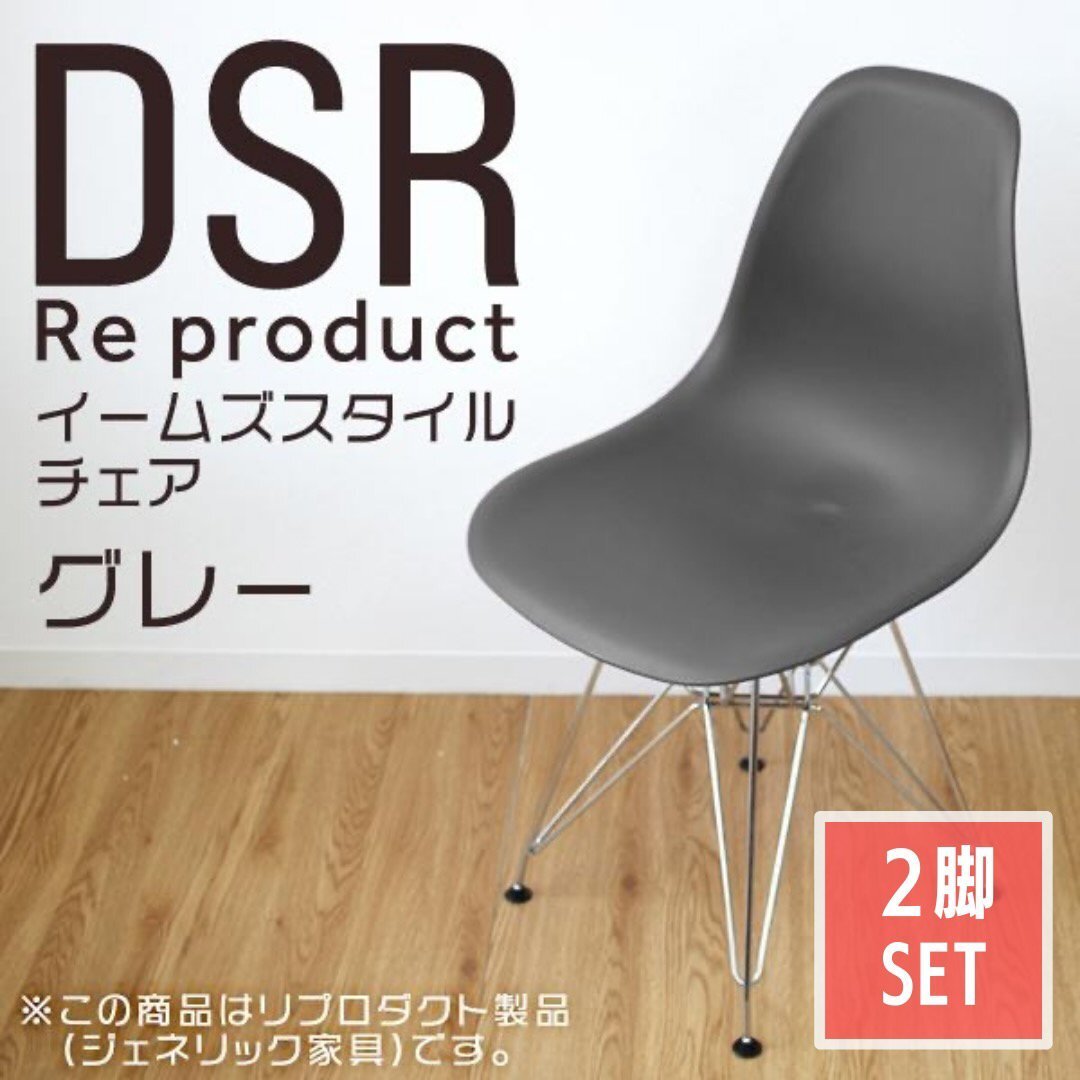 > 【2脚セット】イームズチェア グレー シェルチェア リプロダクト DSR eames チェア 椅子 イス ジェネリック家具 北欧 ダイニングチェア