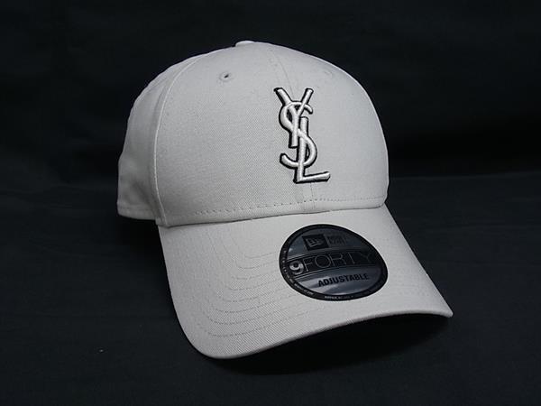 > 1円 ■極美品■ YVESSAINTLAURENT イヴサンローラン ニューエラ コラボ コットン ベースボールキャップ 帽子 ライトグレー系 FT8753