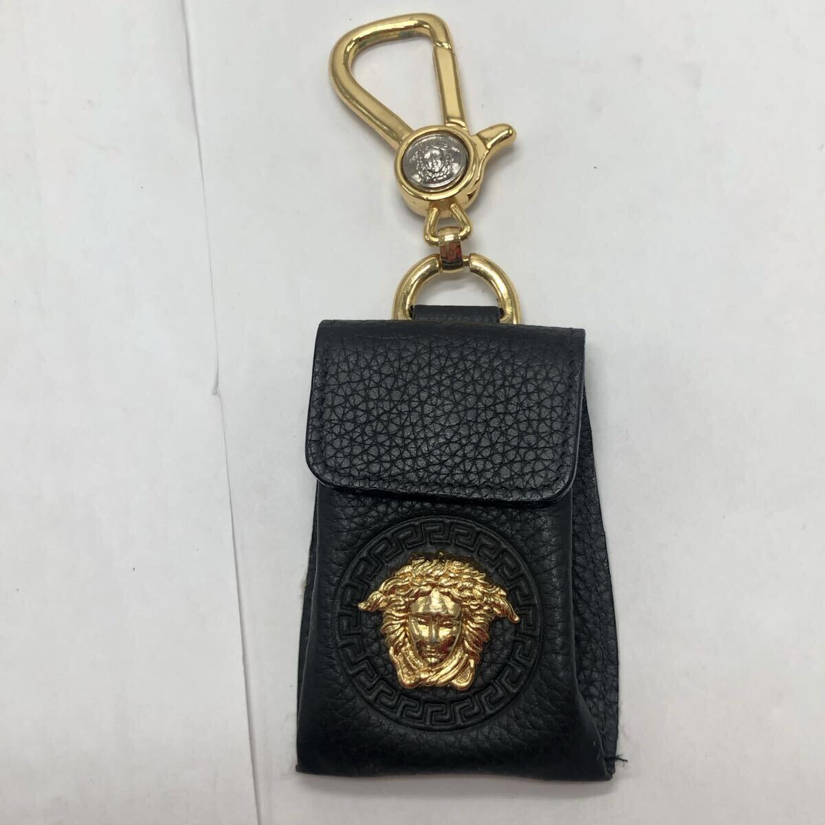 - GIANNI VERSACE ヴェルサーチ レザー キーホルダー ブラック 中古 KH V5KL