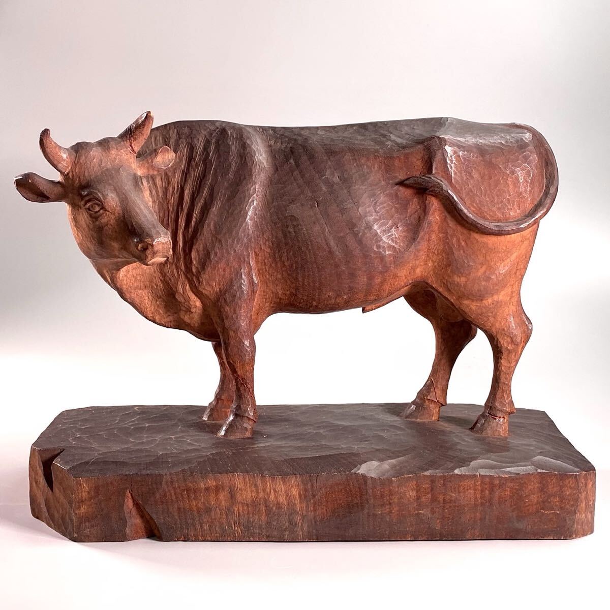 - 猫夢◆ 古美術品 大島五雲 木彫 牛置物 37cm 一刀彫 唐物 骨董 [R212.3]QW3