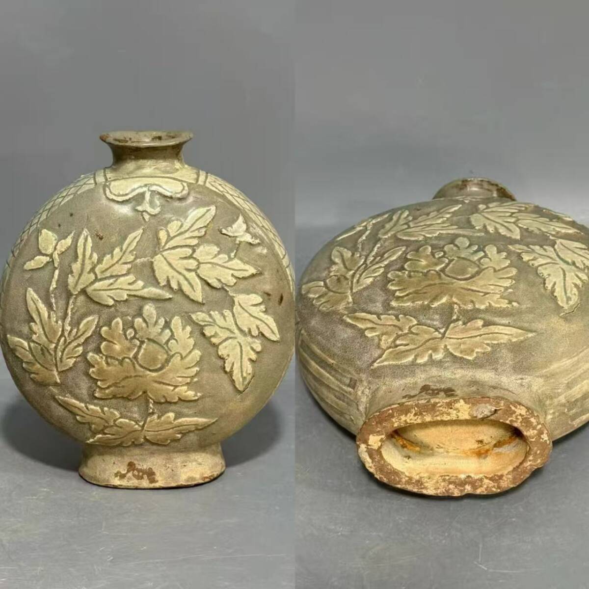 - B7176◆旧家買出品◆ 朝鮮古美術 高麗磁 李朝時代 古高麗 高麗粉青磁扁瓶 高さ25cm