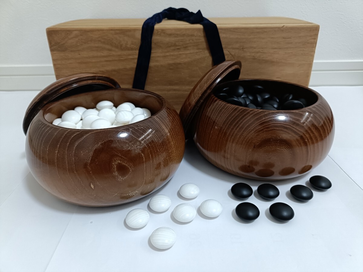 - ☆彡極美品◇日向特製 本蛤碁石 43号 『月印』★本桑超々特大碁笥セット / 桐箱付