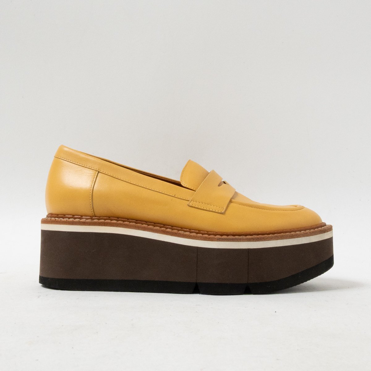 - 【1円スタート】 CLERGERIE クレジュリー 9610 サイズ35 フランス製 ローファー レザー 厚底 イエロー 革靴 カジュアル レディース 婦人