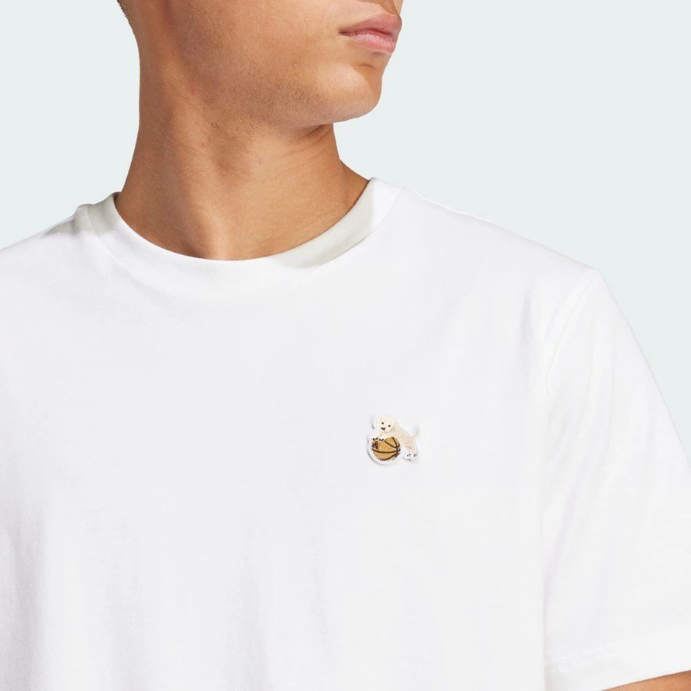 > ○送料390円可能商品 アディダス adidas 新品 メンズ ドッグ フープ パッチ グラフィック 犬 バスケットボール Tシャツ 白[JZ7445-L] QWER
