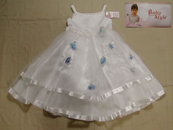 - ■タグ付新品:120白いドレス 外せる立体花柄&大きいリボン DmU56