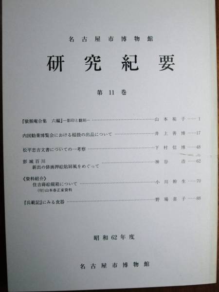 - 名古屋市博物館研究紀要/第11巻/昭和62年度■昭和63年/初版