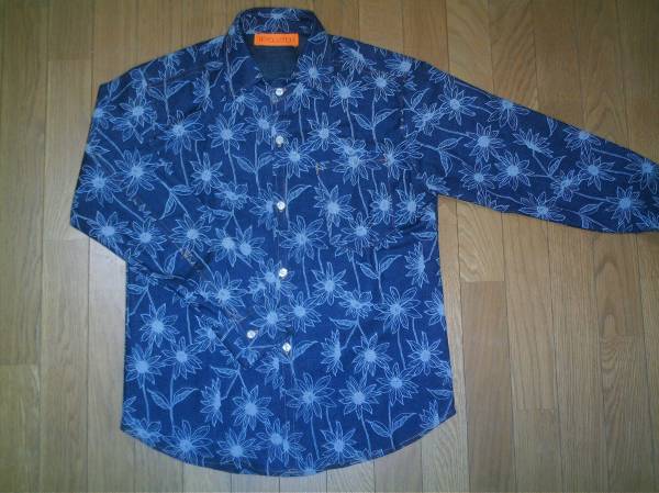 - ☆手作り☆ ストレッチデニム長袖シャツ 花柄 M 新品 送無料あり