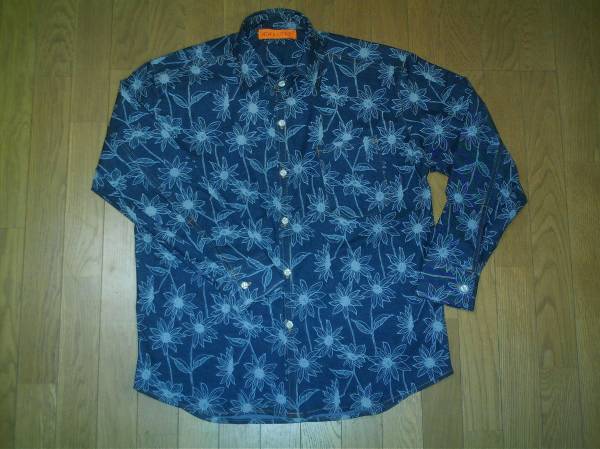 - ☆手作り☆ ストレッチデニム長袖シャツ 花柄 XL 新品 送無料あり