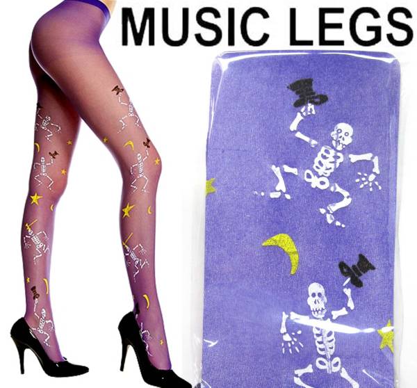 - 56a)MUSICLEGSガイコツストッキングパープル紫ダンス仮装セレブ ハロウィン