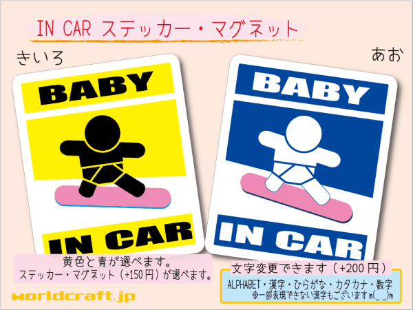 > ■BABY IN CARマグネットスノーボード!スノボ 桃 赤ちゃん ベビー シール 車に乗ってます ステッカー/マグネット選択可能☆即買(3
