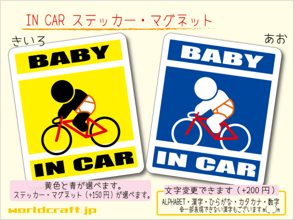 - ■BABY IN CARステッカー自転車ロードバイク!サイクリング 1枚 色・マグネット選択可■赤ちゃんが乗ってます かわいい シール ベビー 車に