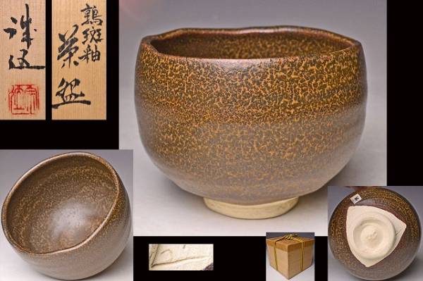 - 近藤誠伍 ★ 鶉斑釉茶碗 ★ 共箱 ★ カイラギ風 ★ 検 近藤宗位 万宝焼
