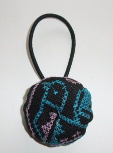 - ヘアゴム 《 タイ 山岳民族 古布 ヘアゴム 》 紺地 ブルーJ カラフル マルチカラー