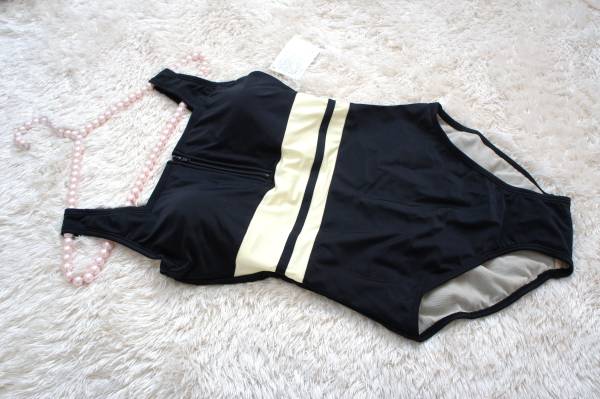 - ●水着 2L●フロントファスナー*黄ラインブラックワンピース水着
