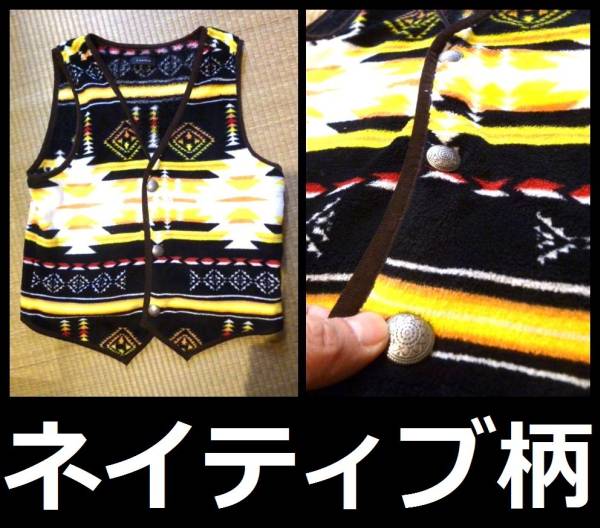 - 1着限り ネイティブ柄 フリースベスト 黒 Mサイズ 即決あり 早い者勝ち ベスト 総柄