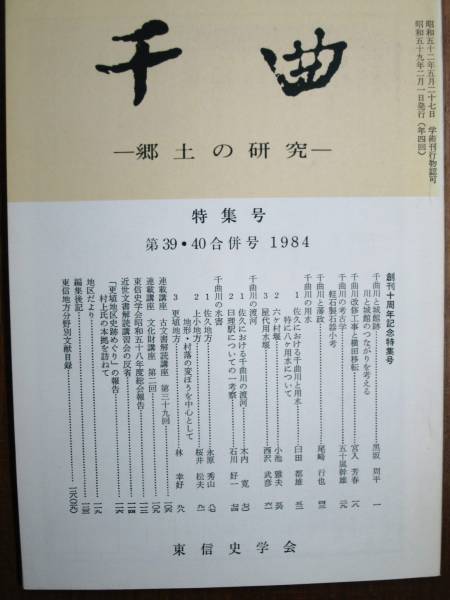 - 千曲―郷土の研究/第39・40合併号■東信史学会/1984年/非売品