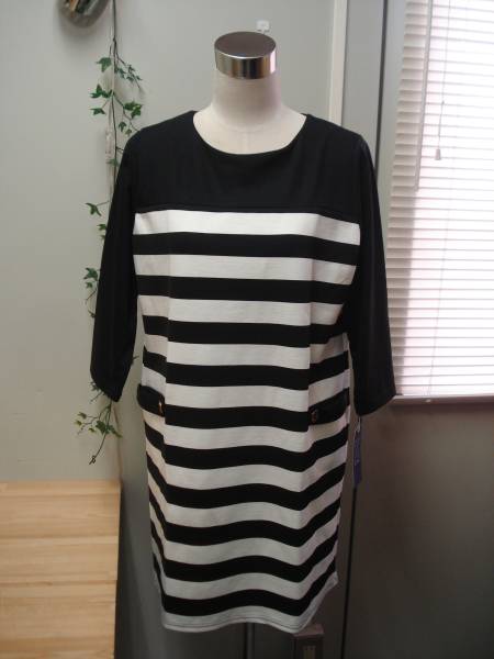 - 新品訳あり☆Aquilegia☆ボーダー イカリボタン 半袖ワンピース L