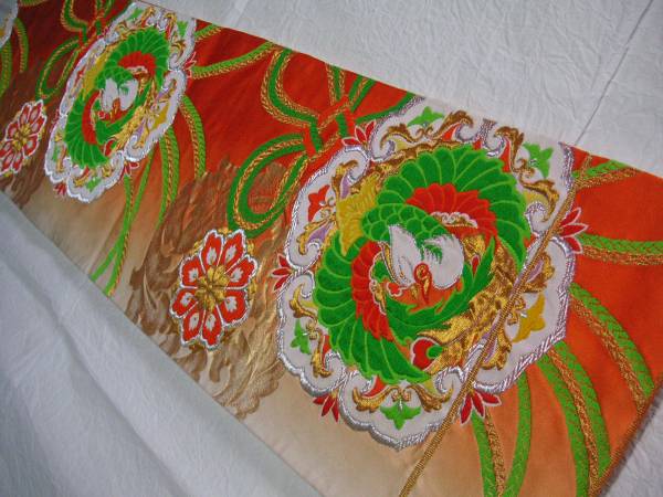 - 袋帯 オレンジのグラデーション 正絹 古典柄