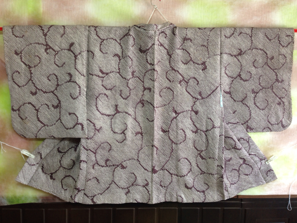 - 中古品 正絹袷羽織(74) 古代紫の総絞り 唐草模様 リメイク050708