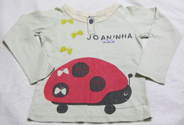 - 110㎝ nico hrat 長袖 カットソー てんとうむし 薄緑×ベージュ