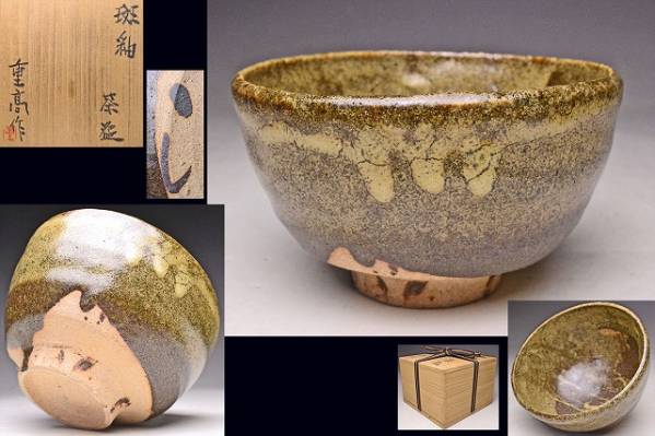 > 加藤重高 ★ 斑釉茶碗 ★ 共箱 ★ 唐津風 ★ 検 加藤唐九郎 加藤高弘 嶺男