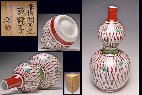 - 瀧田項一 ★ 赤絵網目文瓢瓶子 ★ 共箱 ★ 検 人間国宝 富本憲吉 ★
