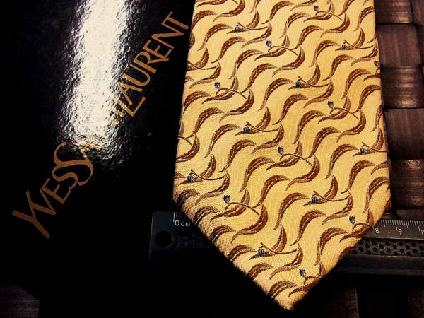 - 【良品】y5600サンローラン織・植物ネクタイ●