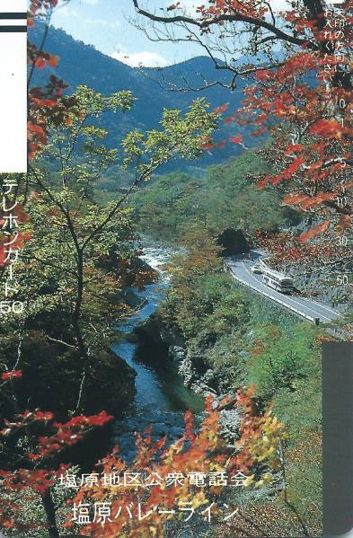 - 【テレカ】 塩原バレーライン 紅葉 温泉渓谷<フリー110-6598>