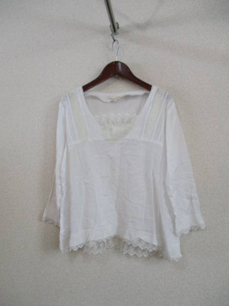 - bluegrass白レース付ガーゼ7分袖ブラウス(USED)11516②)