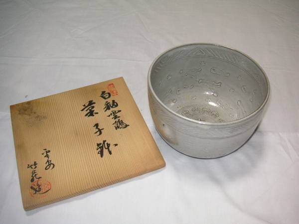- 清水焼 菓子鉢 竹荘 未使用 共箱 雲鶴