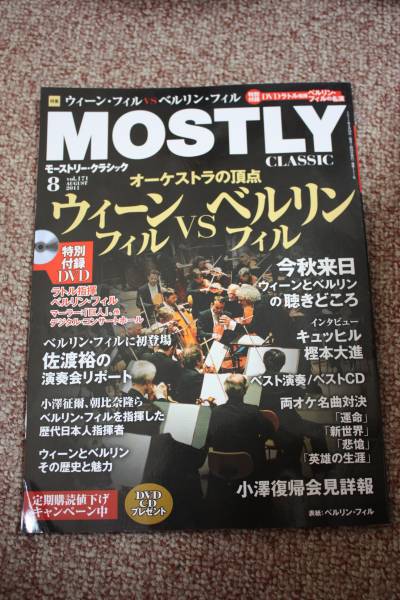 > MOSTLY CLASSIC 2011年8月号ウィーンフィル ベルリンフィル 熊本/冨田勲/レイ・チェン バイオリン/熊本マリ ピアノ/カザルス/外山雄三