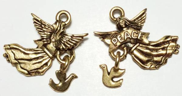- ピューターチャーム【天使とハト】 ゴールド2個 ten09