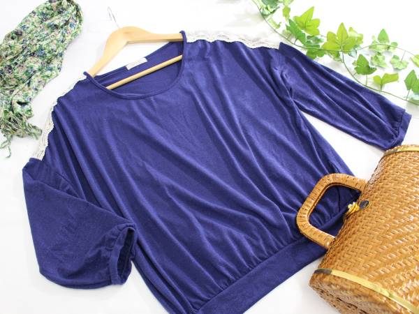 - *pour la frime プーラフリーム*肩レースラメ ボーダー カットソー