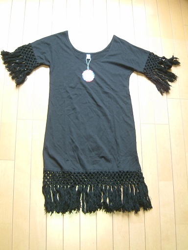 - 新タグ!LillyLilly フリンジ付×黒ワンピース F 水着の上OK 定価¥7245