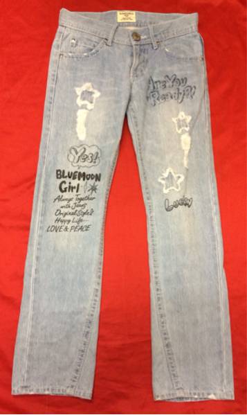 - BLUE MOON BLUE 落書きペンプリント アイスウォッシュジーンズ26