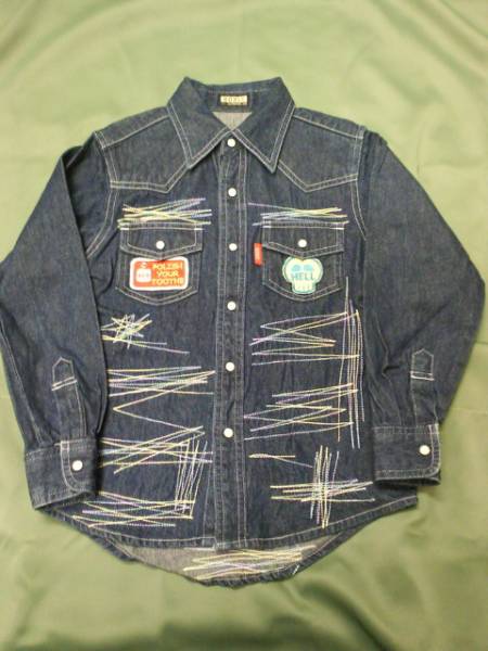 > 斬新デザイン ピノチオ BONIX 子供 110 ワッペン付 デニムシャツ