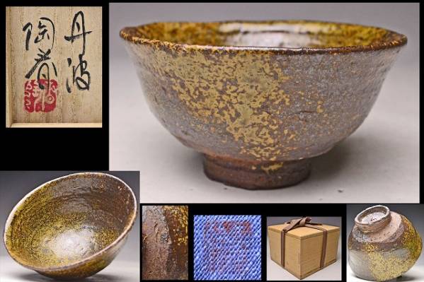 - 石田陶春 ★ 丹波茶碗 ★ 共箱共布 ★ 古丹波焼締タイプ ★ 検 森本陶谷