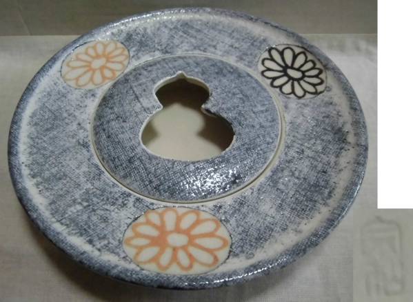 - ★レトロ 宗仙?瓢箪型抜き 蓋付 陶器 灰皿 花柄 直径約22cm 染付 工芸品★