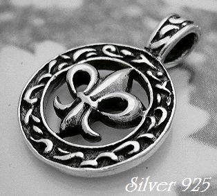 - シルバー925銀の百合の紋章サークル フレア ペンダント/ALL50%OFF