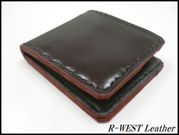 - 牛革 無地レザーウォレット ショート こげ茶/手縫いタイプ/革製品ALL20%OFF