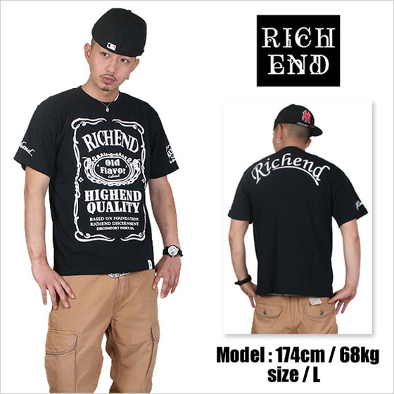 > RICHEND/リッチエンド Tシャツ 【HYBRID/ハイブリッド】 ブラック×ホワイト(Lサイズ) アメージング 服 黒 白 モノトーン ストリート