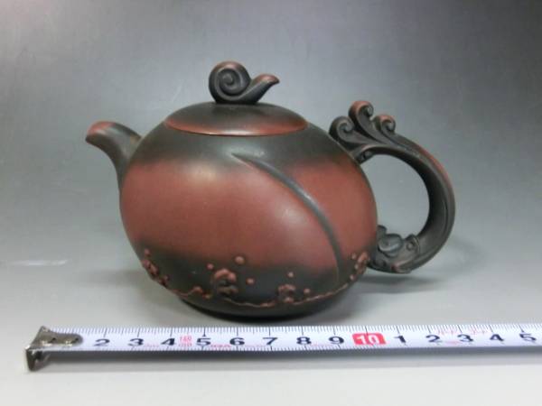 - 急須■朱泥【彩陶】造 波紋 つまみカタツムリ 朱泥 煎茶道具 お茶道具 珍品■