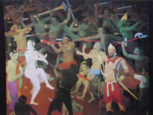 - 中村岳陵、降魔成道図(2)、希少画集画、新品高級額装付