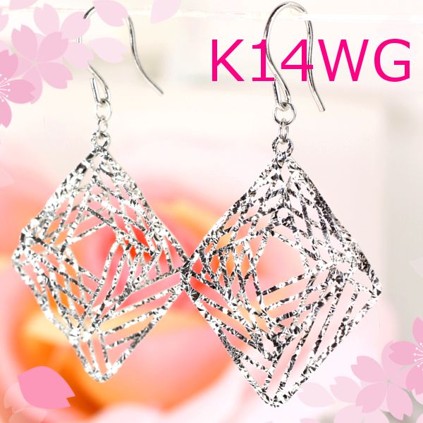 > 【早い者勝ち卸特価】【新品即決】K14WGフックピアス キラキラ輝く揺れるピアス☆ロングピアス 14金ホワイトゴールドET087