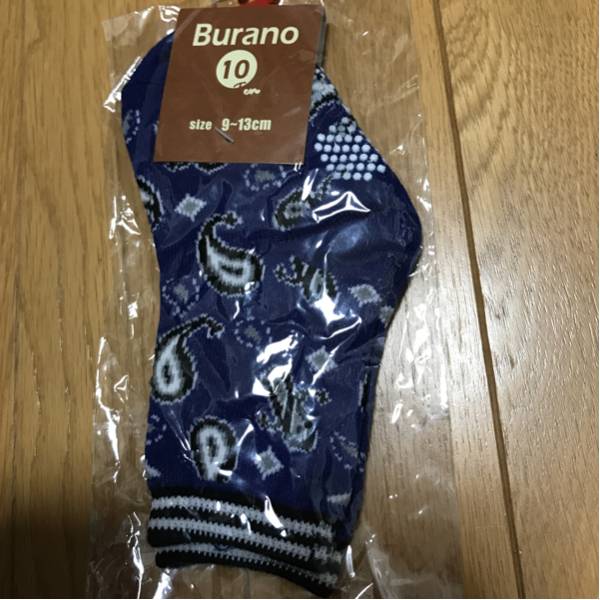- 新品未使用 Burano ペイズリー柄靴下 9~13cm 青