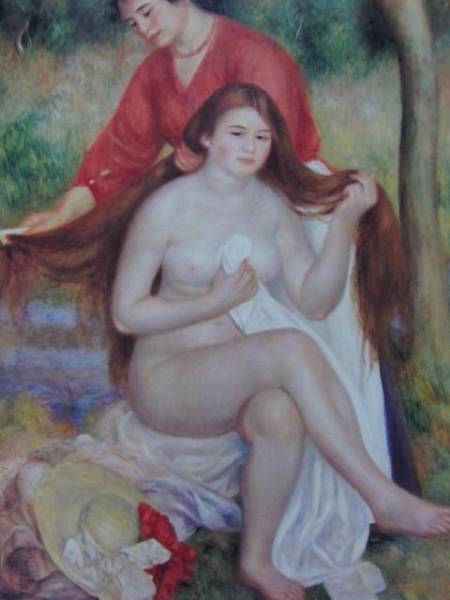 - ルノワール、髪をふく浴女、希少画集画、新品額装付、状態良好、mai