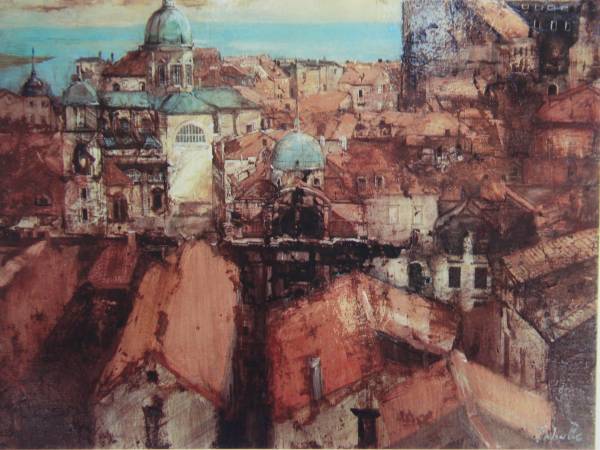 - 斉藤三郎、【ドブロブニクの港町】、希少画集画、高級新品額・額装付、状態良好、送料無料