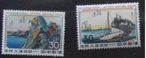 - 未使用 昔の切手 文通週間 '59桑名 '61箱根 2枚組